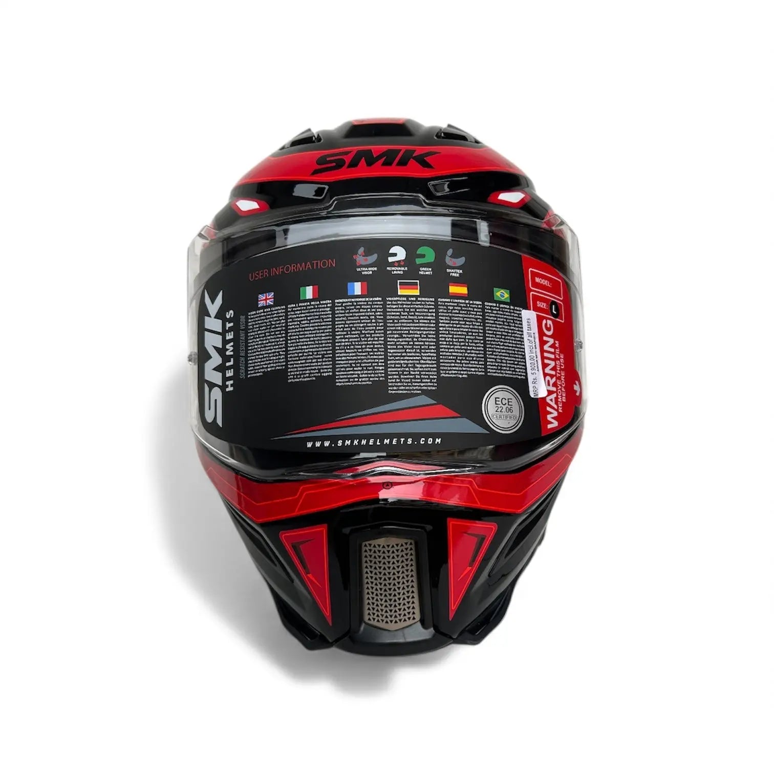 SMK Agnar Cyborg Helmet, SMK Agnar GL263, Grey Red Motorbike Helmet, Dual Visor Full Face Helmet, ECE 22.06 Helmet India, Best Full Face Helmet, Scratch Resistant Visor Helmet, SMK Cyborg Series
