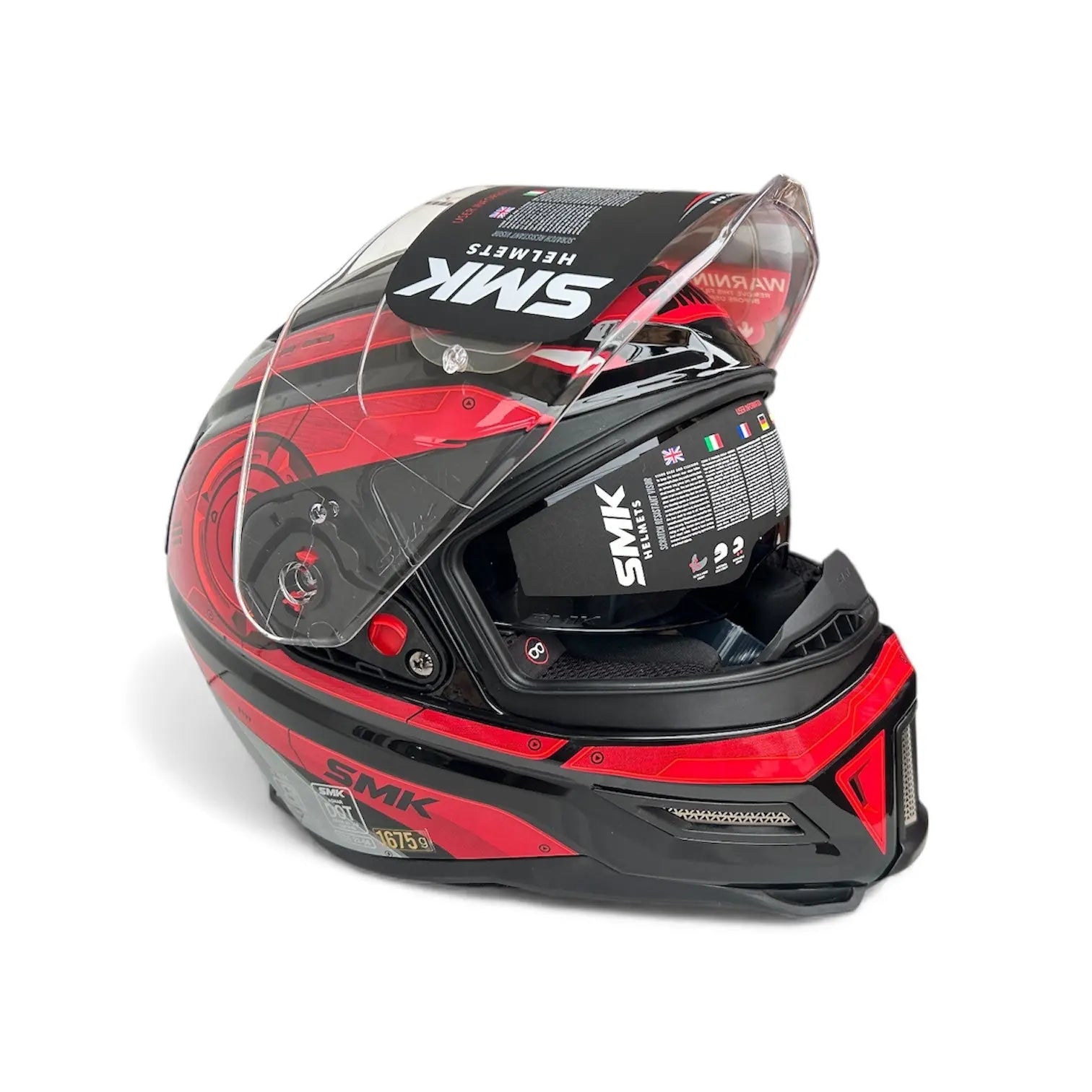 The SMK Agnar Cyborg Full Face Dual Visor Helmet – Glossy Grey Red (GL263) is engineered for riders who demand top-tier protection, modern features, and futuristic style. Its bold Cyborg-inspired graphics and aerodynamic shell design make it one of the most striking helmets in the SMK lineup.