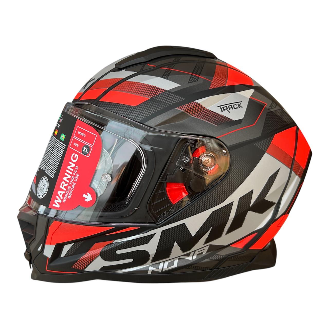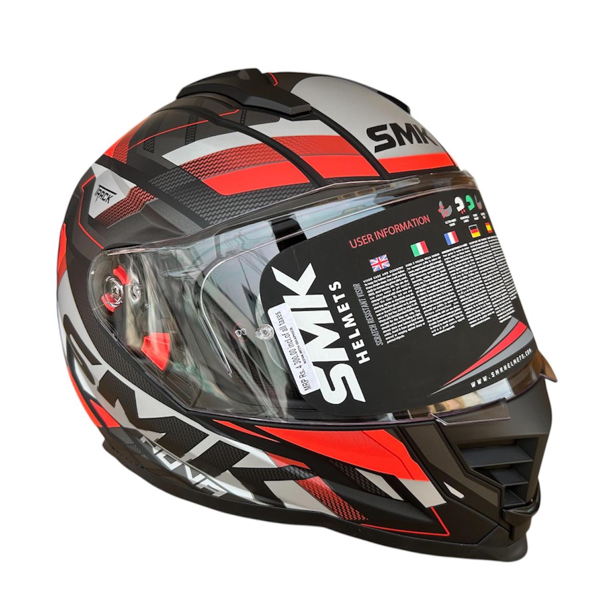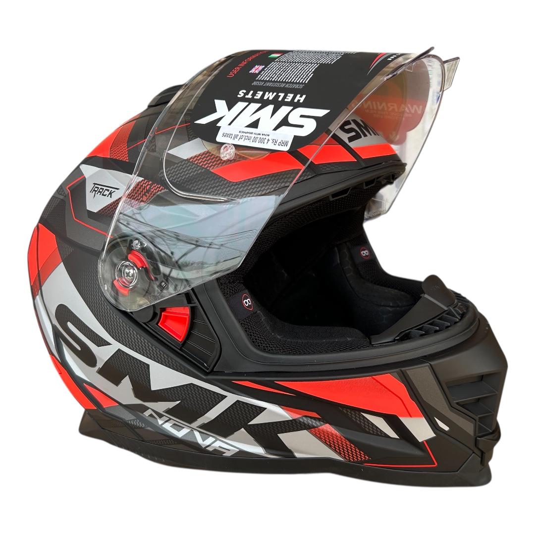 SMK Nova Track Helmet MA263 – Matt Grey Red | Pinlock 30 | ISI, DOT & ECE 22.06 Certified